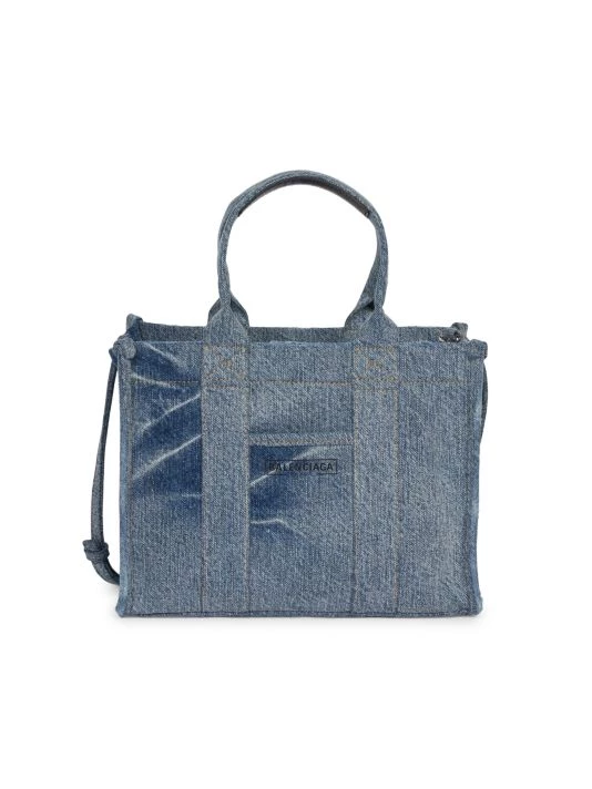 Highlighted with a stamped logo, Balenciaga’s Hardware tote flaunts a denim construction. This Italian-made piece is accompanied by a removable shoulder strap.