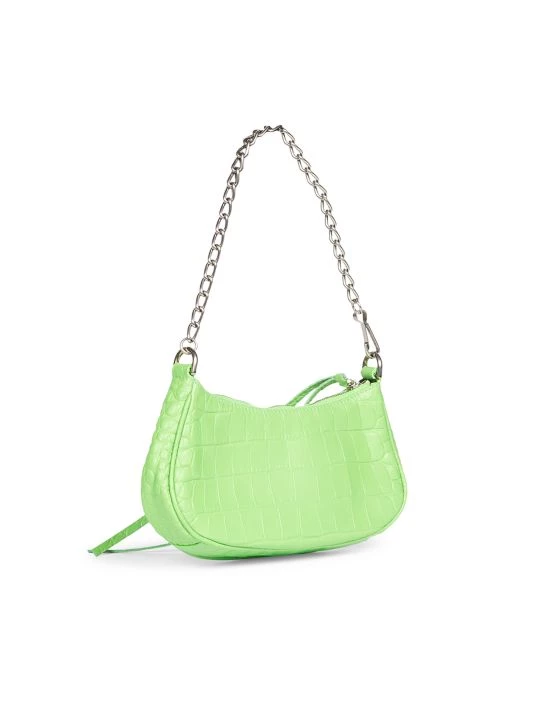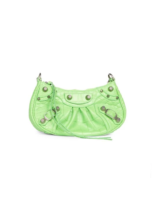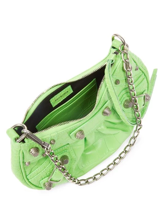 From the Le Cagole Collection. Made in Italy of crocodile-embossed leather, Balenciaga’s shoulder bag features long knotted zipper pulls and signature studs. This luxurious piece is accompanied by a chain handle and adjustable shoulder strap.