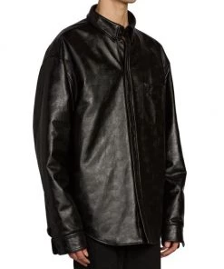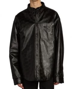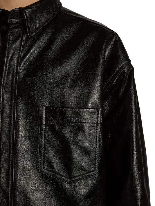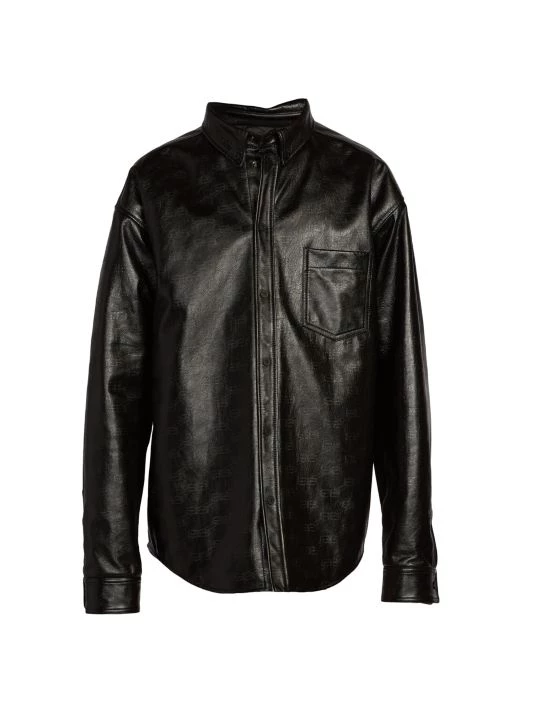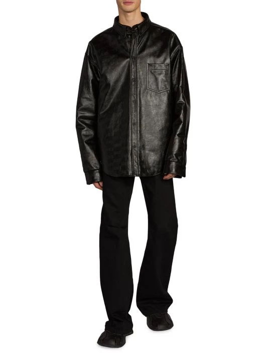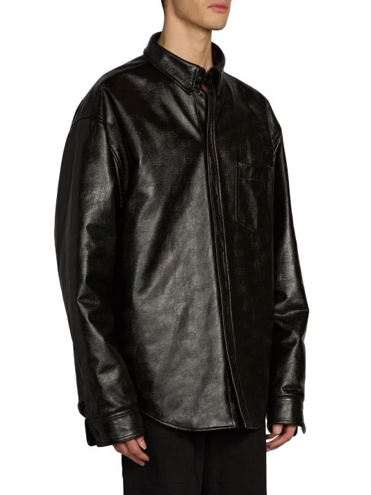 Crafted of calfskin leather, this boxy overshirt features a subtle Balenciaga monogram print and a comfortable quilted lining.