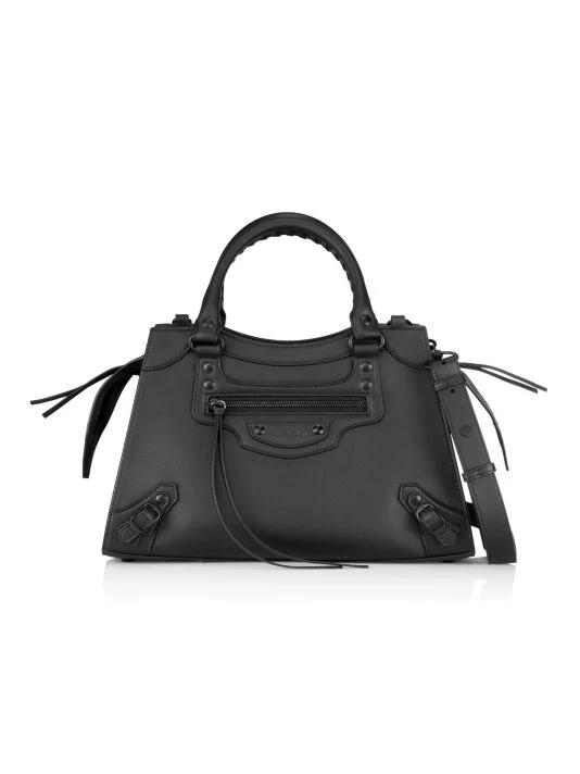 From the Neo Classic City collection. A monochrome leather bag with hand-braided top handles and embossed tone-on-tone logo.