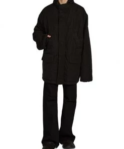 Showcasing a voluminous silhouette with elongated sleeves, this parka is finished with a subtle Balenciaga logo at the lower back hem.