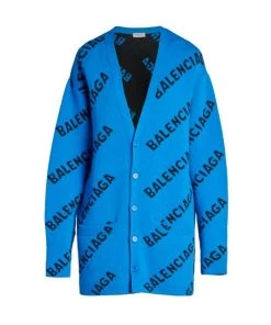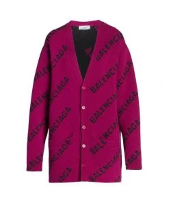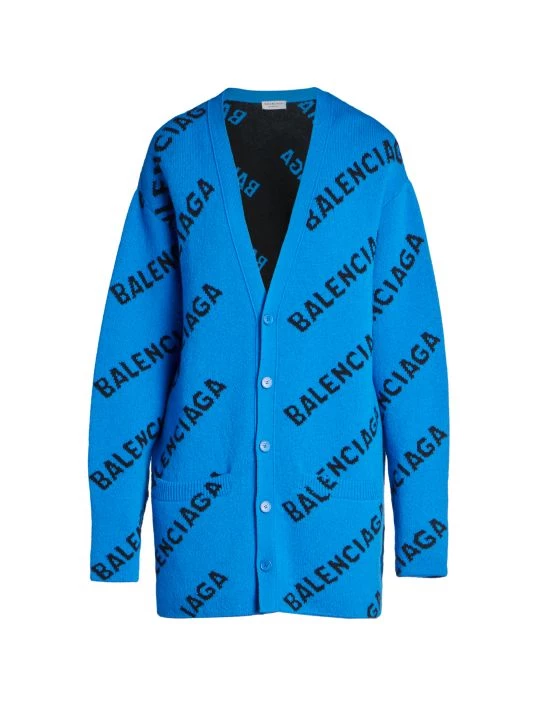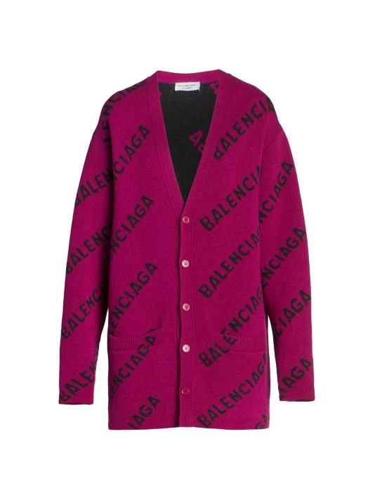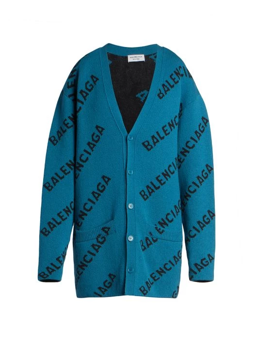 Oversized wool cardigan with contrast horizontal branding.