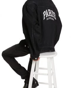Cut for an oversized fit, this denim jacket is embroidered with a varsity-style PARIS logo across the back.