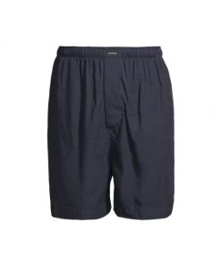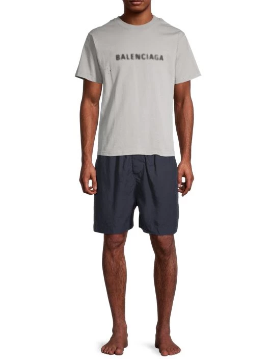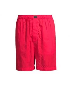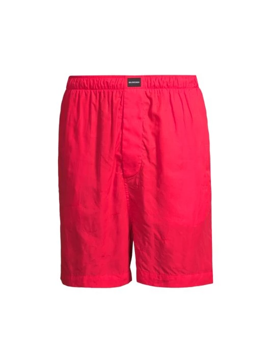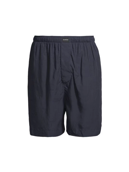 Longline loose-fit pajama shorts with logo patch at the waistband.