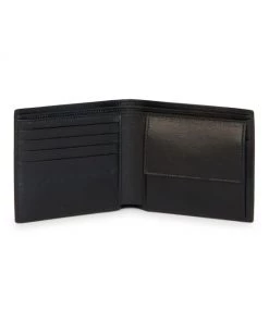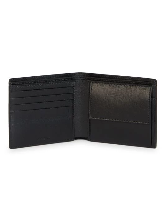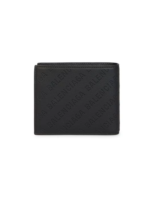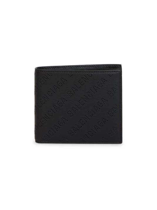 This leather bi-fold wallet is detailed with perforated signature logo.
