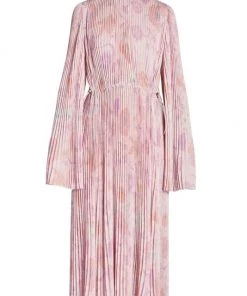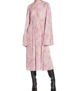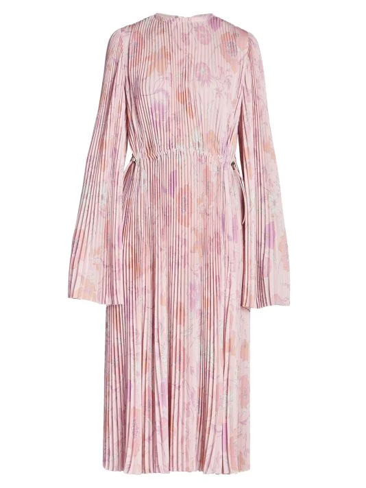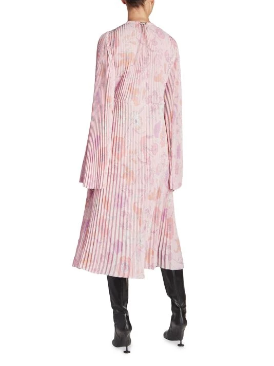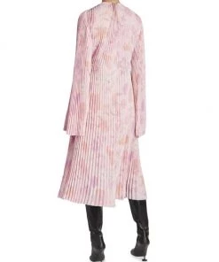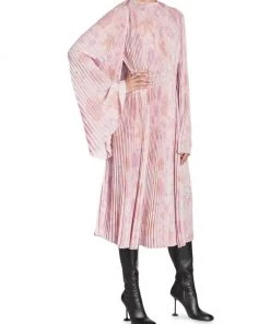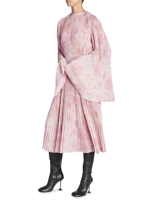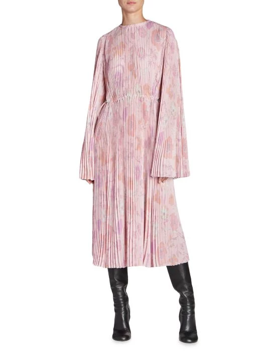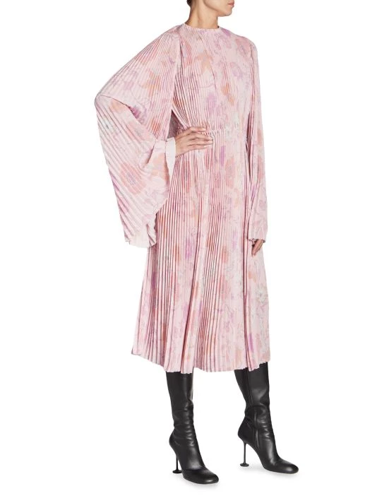 Made in Italy, Balenciaga’s midi dress is detailed with structured pleats. This elegant piece flaunts voluminous kimono sleeves.