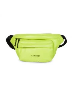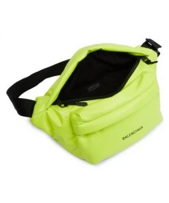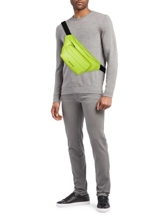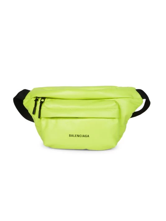 A petite printed logo fronts this belt bag, crafted from neon leather to a puffy silhouette.