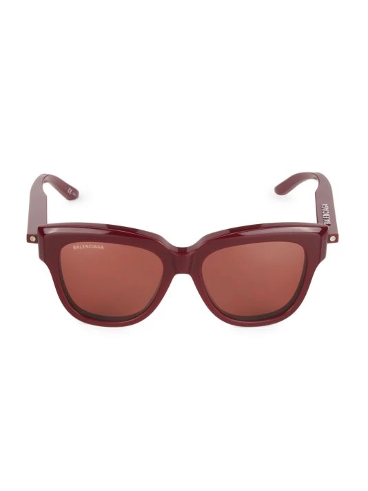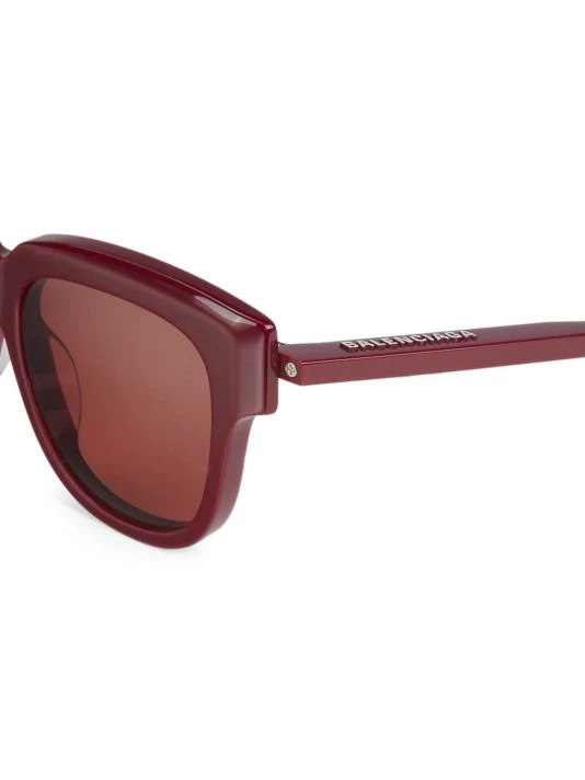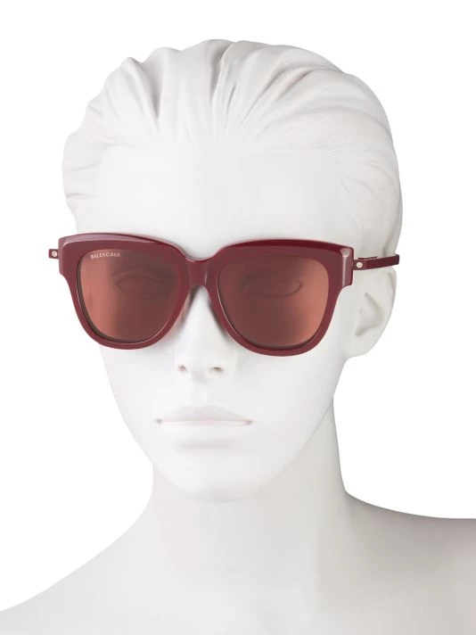 Bold square sunglasses featuring contrast logo at reverse temple and iconic metal screws on front view.