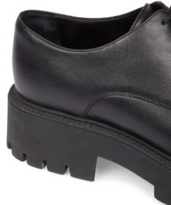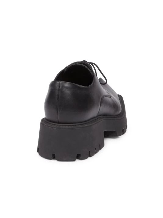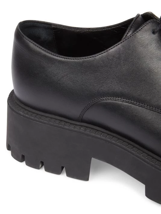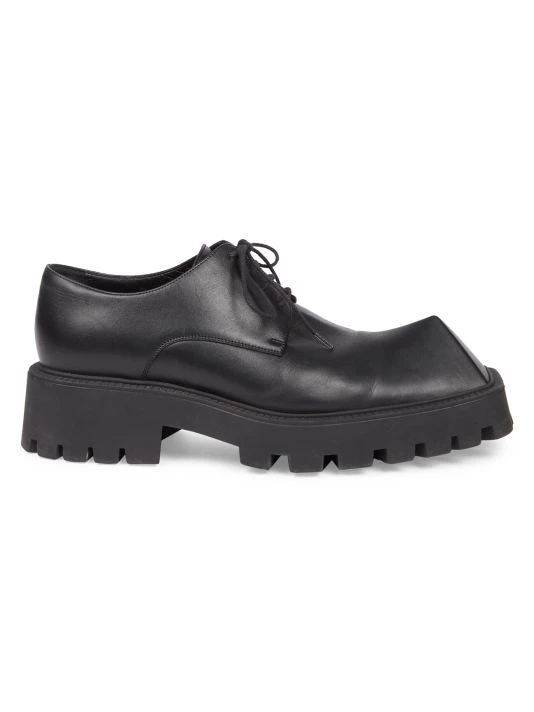 A bold angled toe and oversized treaded sole lends an authoritative air to these supple leather derbys.
