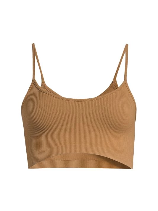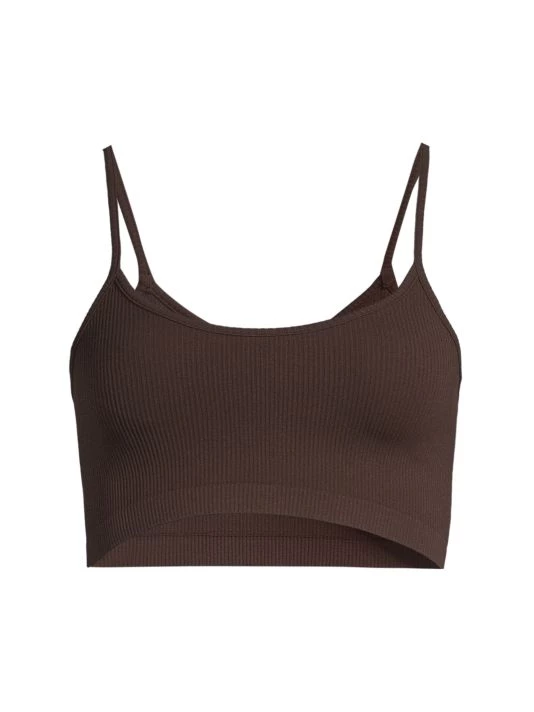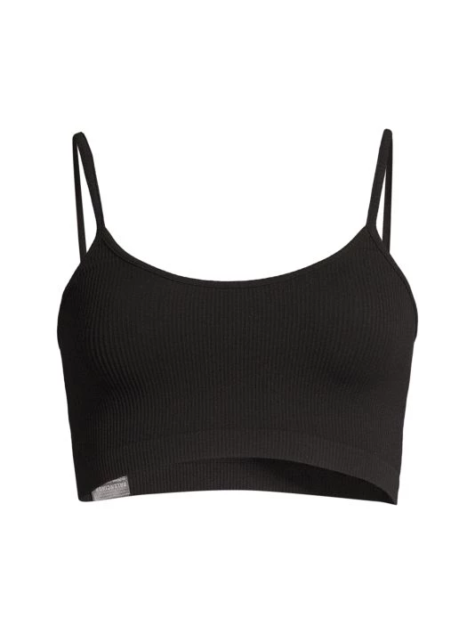 This sporty crop top from Balenciaga features a scoopneck and thin shoulder straps. Spun from stretchy fabrication, this style showcases a chic rib-knit finish.