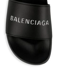 A classic pool slide with a chrometone-embossed logo detail.
