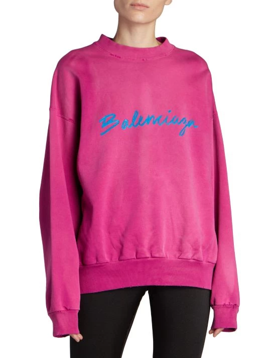 Balenciaga’s sporty crew sweatshirt is crafted of soft cotton. This cozy piece showcases a script-style logo at the chest.