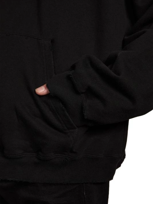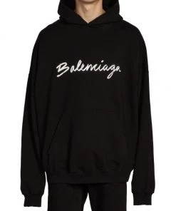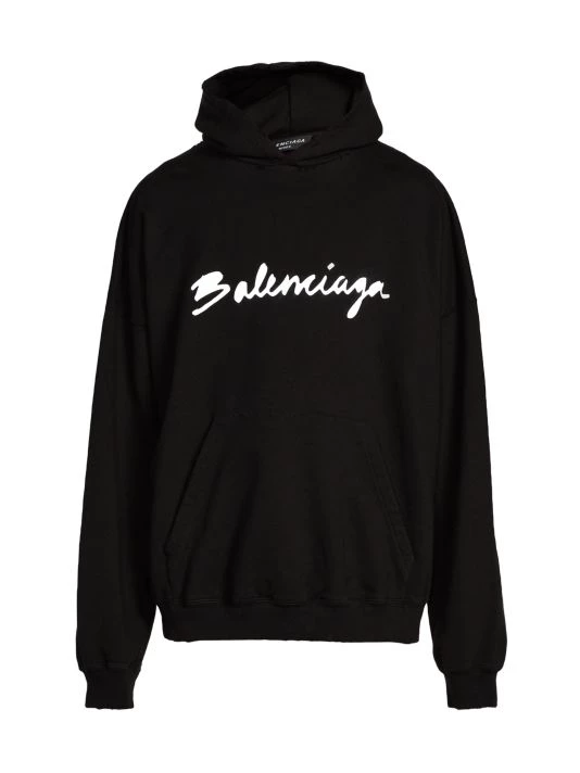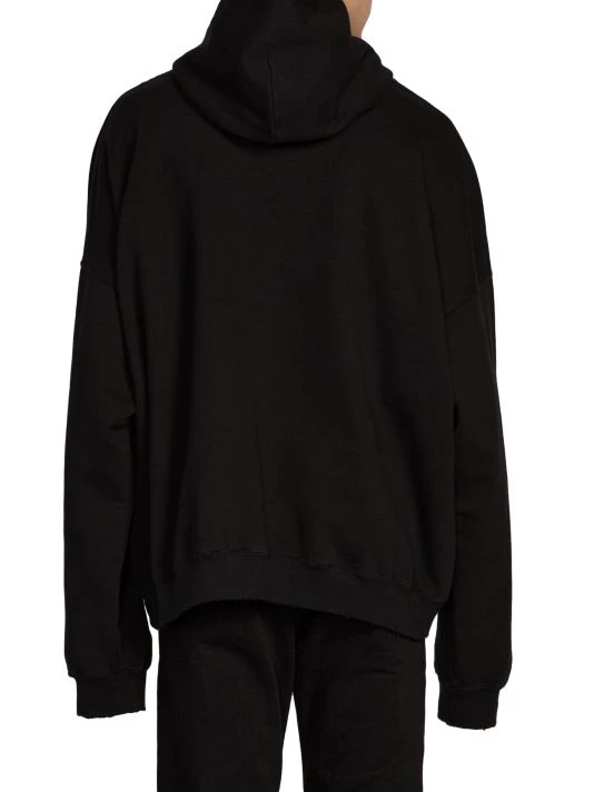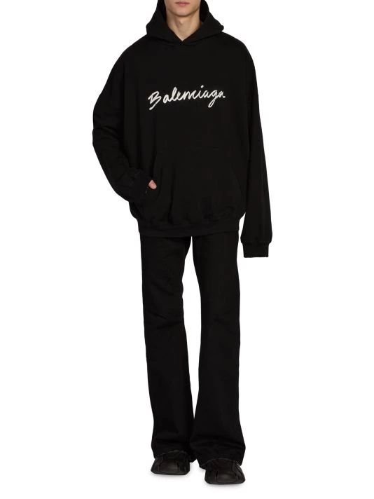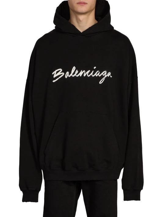 Cut for a wide fit, this hoodie sports a Balenciaga script logo and distressed detailing.