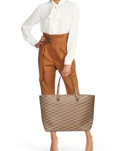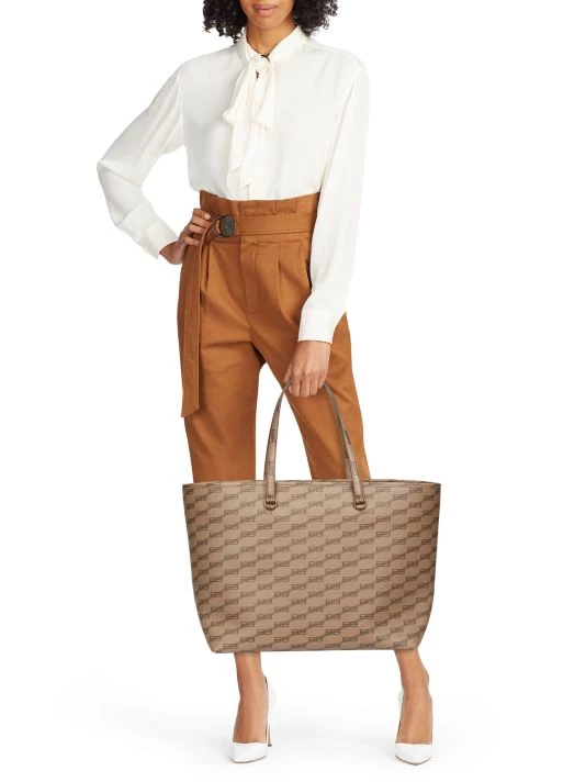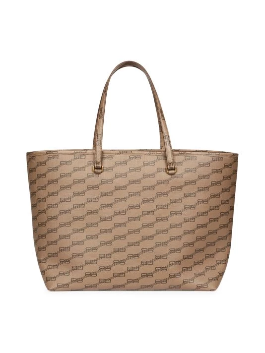 Balenciaga’s Signature shopping bag is crafted of coated canvas showcasing the signature BB monogram.