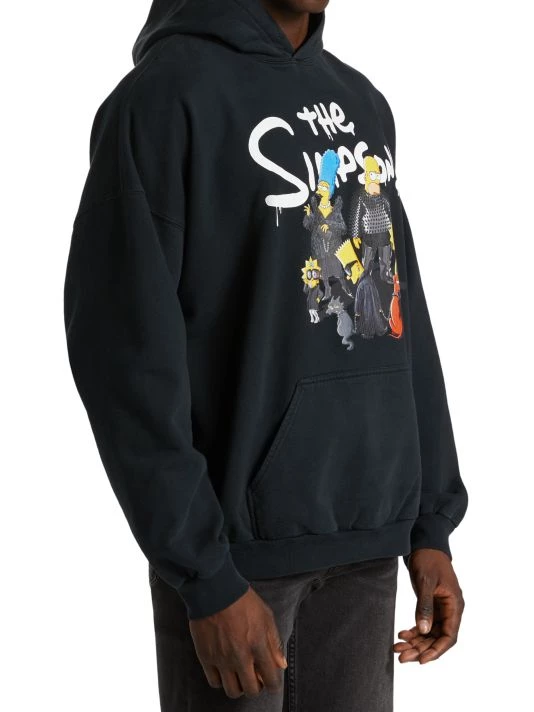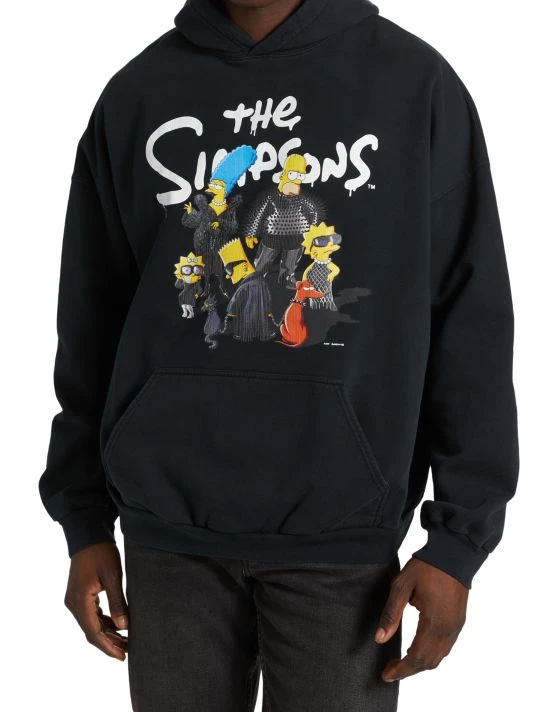 French fashion house Balenciaga joined forces with animated sitcom The Simpsons™ & © 20th Television for a light-hearted collection of graphic T-shirts, oversized sweatshirts, baseball hats, and wristlet wallets. Creative Director Demna Gvasalia, a lifelong fan of the series, created a signature image for the line that features Homer, Marge, and their family, outfitted in iconic looks from the label’s past.This hoodie is cut for a wide fit and features the signature image of the Simpson’s family printed across the front.