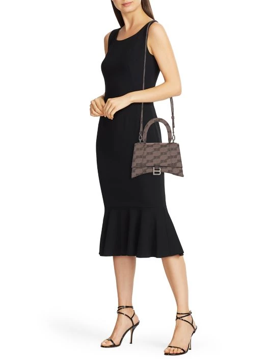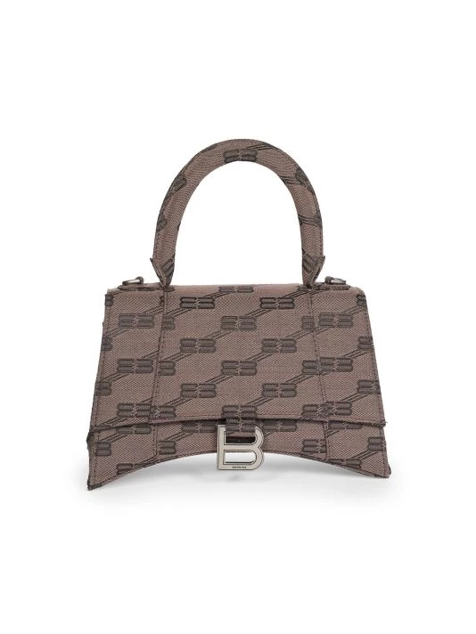 From the Hourglass Collection. Designed in an instantly recognizable curved shape, Balenciaga’s bag is crafted of coated canvas animated in the BB monogram. This Italian-made piece is highlighted with signature logo-engraved B hardware.