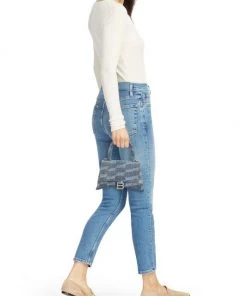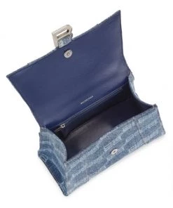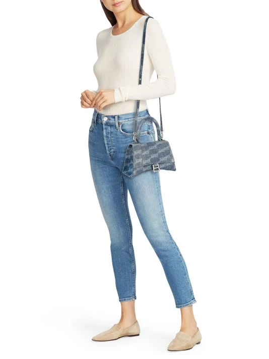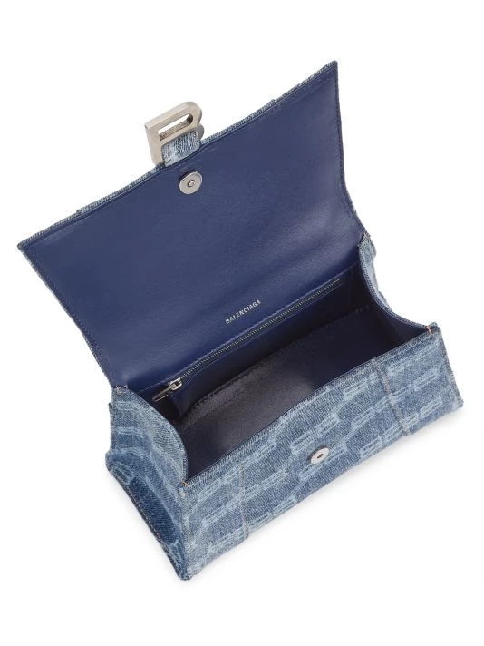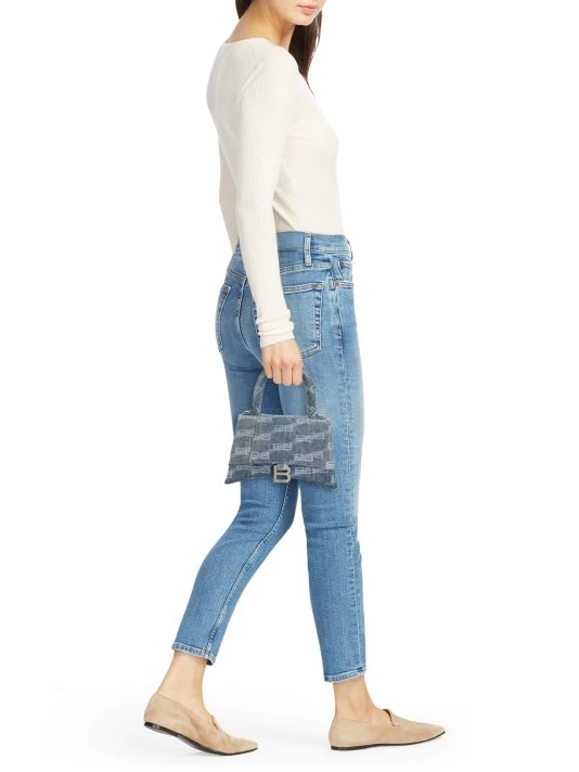 From the Hourglass Collection. Designed in an instantly recognizable curved shape, Balenciaga’s bag is crafted of denim animated in BB monogram. This Italian-made piece is highlighted with signature logo-engraved B hardware.