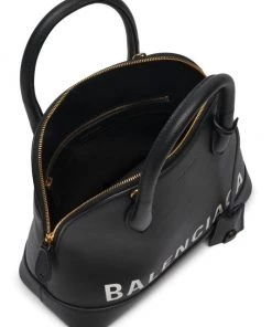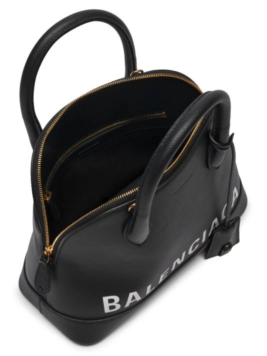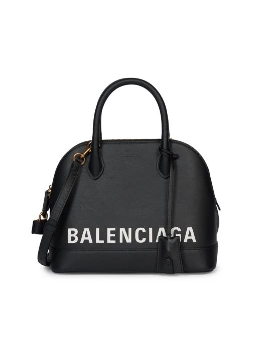 Balenciaga’s take on a structured ladylike satchel, this petite version is crafted of rich leather and stamped with bold logo across the front.