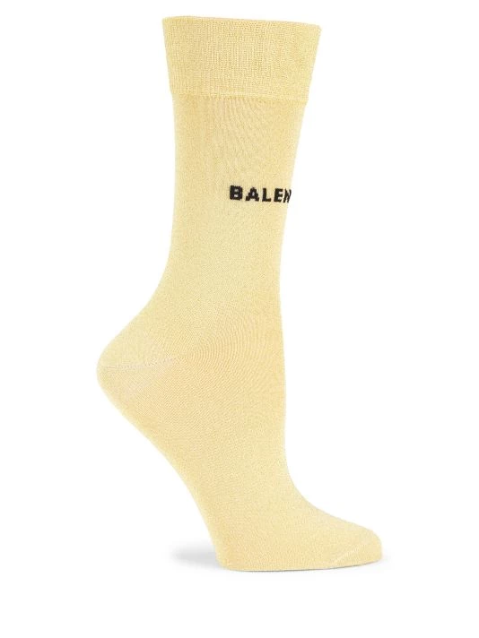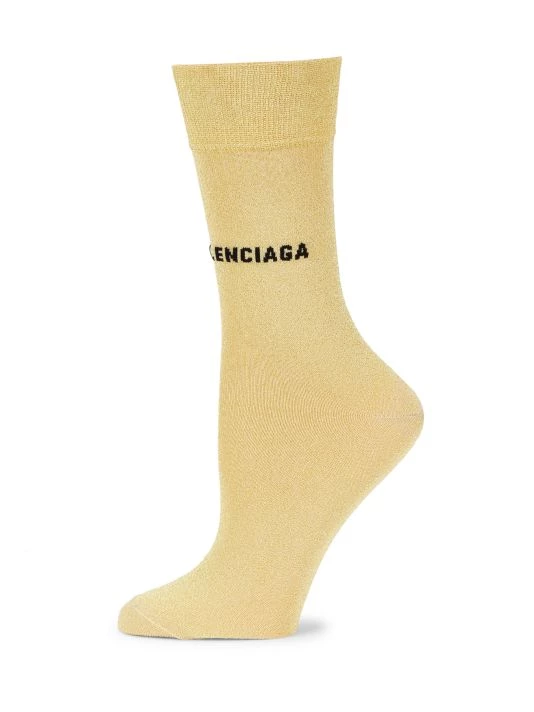 Balenciaga’s crew socks are crafted of metallic fabric with a logo detail.