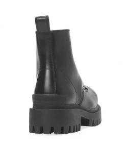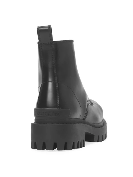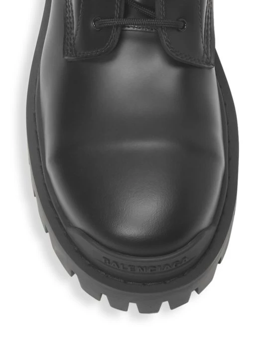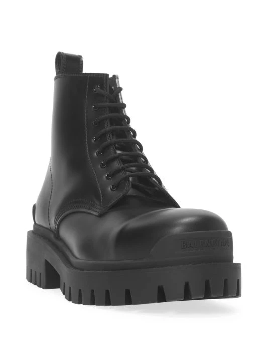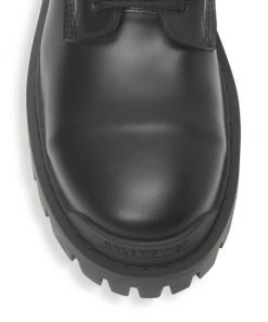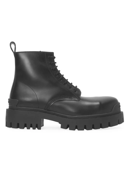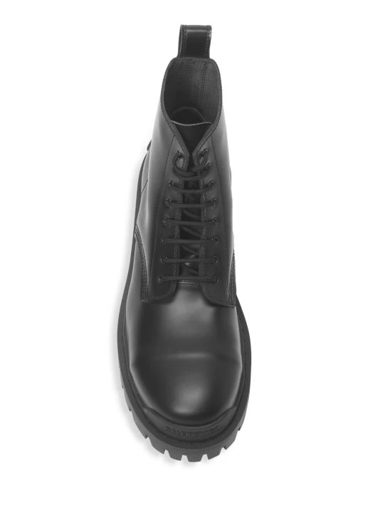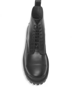 A square toe and oversized treaded sole lends an authoritative air to these supple leather combat boots.
