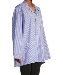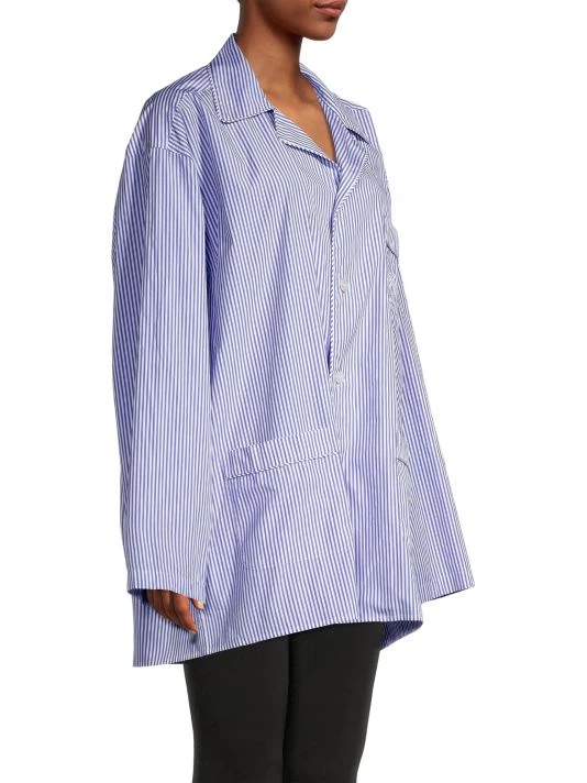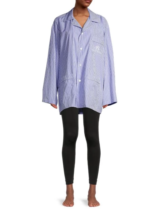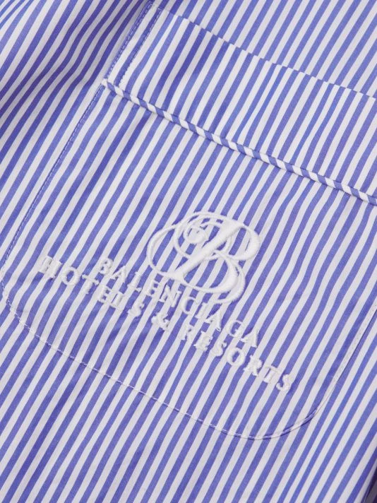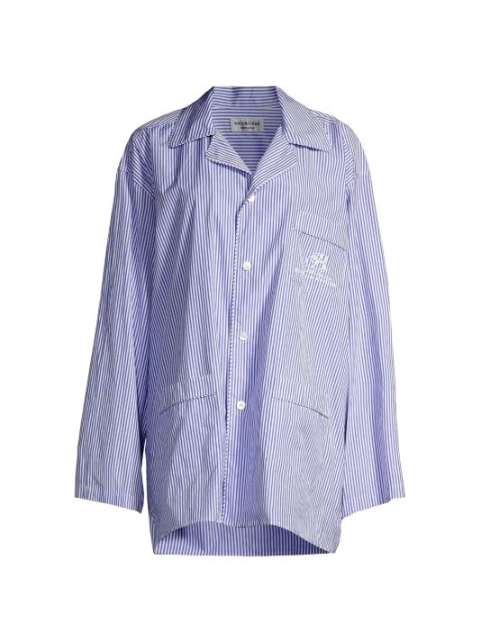 Balenciaga’s pajama shirt is spun from soft striped cotton, featuring a large chest patch pocket boasting an embroidered logo.