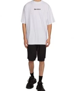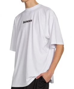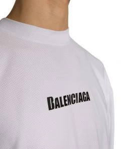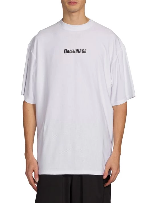 Cut for a boxy fit, this woven mesh T-shirt is finished with a Balenciaga logo across the chest.