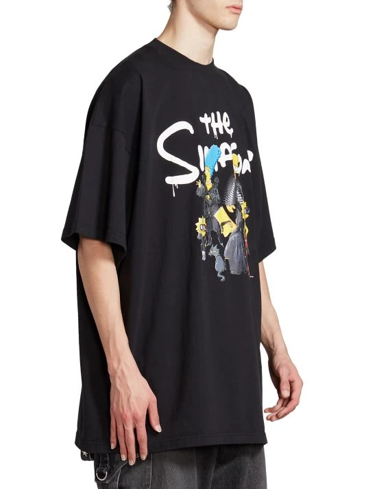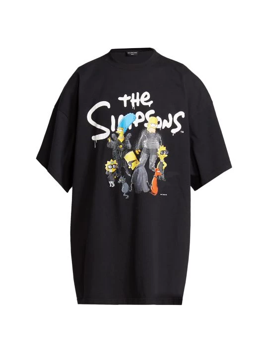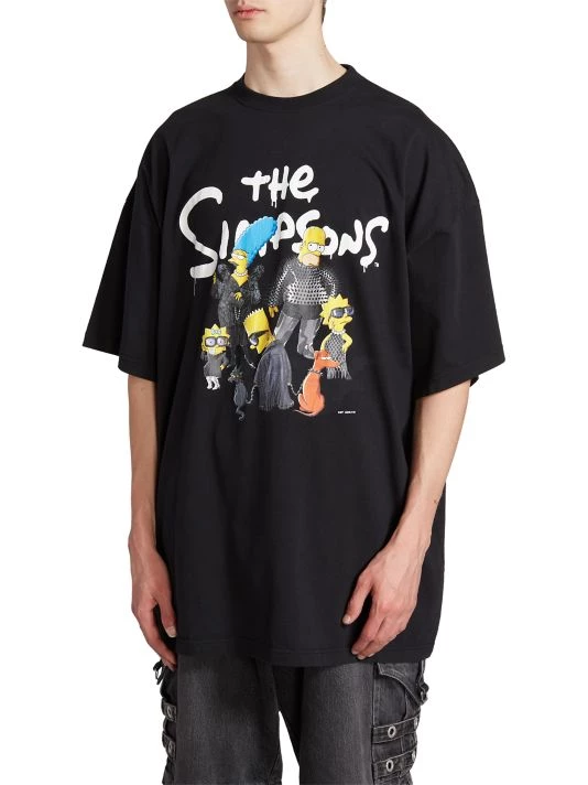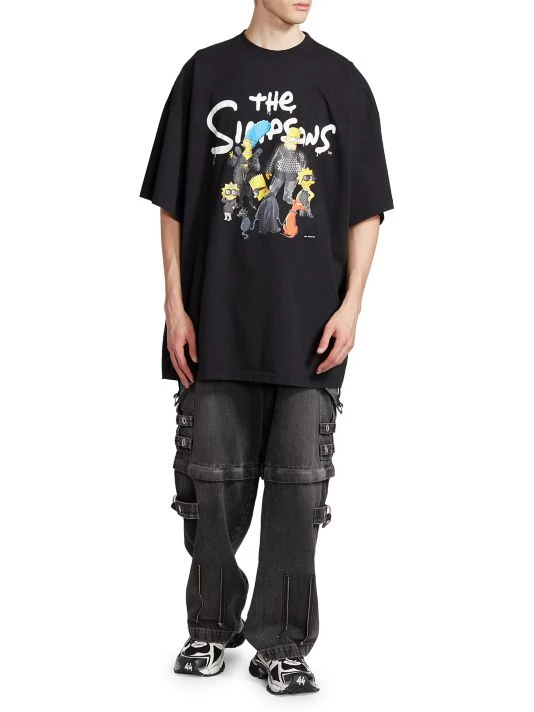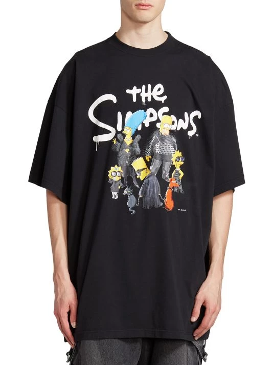 French fashion house Balenciaga joined forces with animated sitcom The Simpsons™ & © 20th Television for a light-hearted collection of graphic T-shirts, oversized sweatshirts, baseball hats, and wristlet wallets. Creative Director Demna Gvasalia, a lifelong fan of the series, created a signature image for the line that features Homer, Marge, and their family, outfitted in iconic looks from the label’s past. This cotton top features a Simpsons graphic and sports a crewneck and short sleeves.