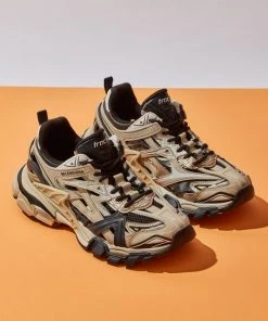 Embodying a modern high-tech finish, these chunky sneakers have a tonal colorblock construction.