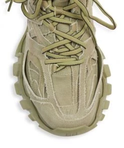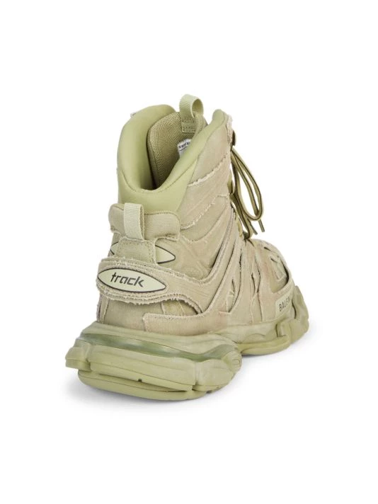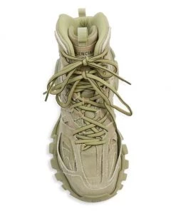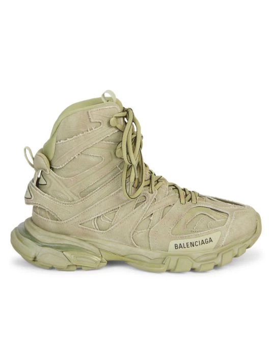 Balenciaga’s Track Hike sneakers sport a high-top silhouette and fasten with lace-up vamps.