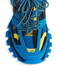 Leather free technical silhouette designed sneaker with vibrant colorblock pattern.