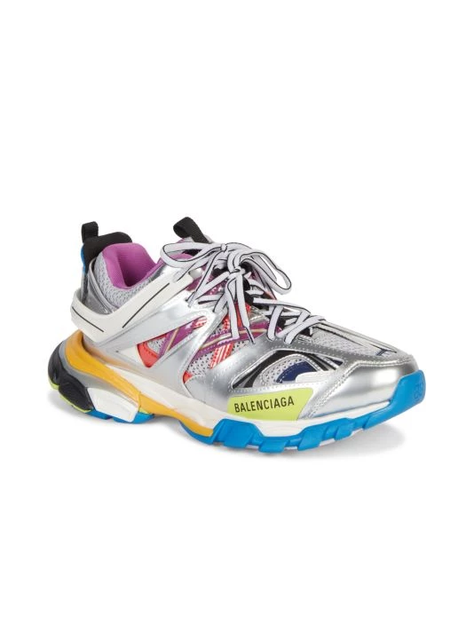 Balenciaga’s Track sneakers feature an overlayed upper and sport the brand’s “BB” logo embossed at the toe.