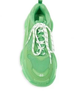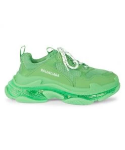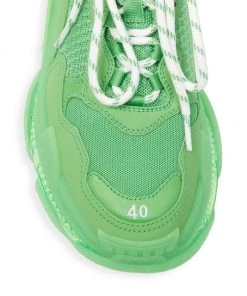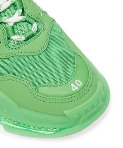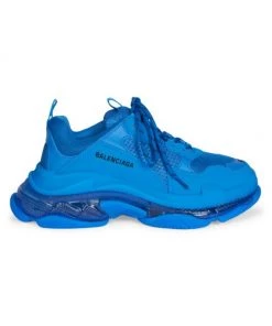 Embodying a modern high-tech finish, these Triple S sneakers are named for their three-sole construction. Embroidered at the toe with the shoe’s size, they are set atop a TPU-injected clear sole, creating a cushy, bubble effect.