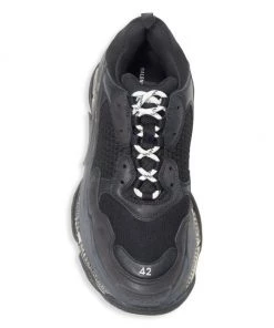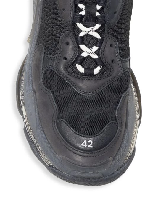 Designed with deconstructed styling, these Triple S sneakers are named for their three-sole construction. Embroidered at the toe with the shoe’s size, their transparent and chunky midsole flatters from every angle.