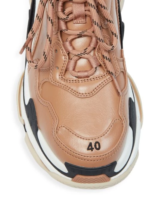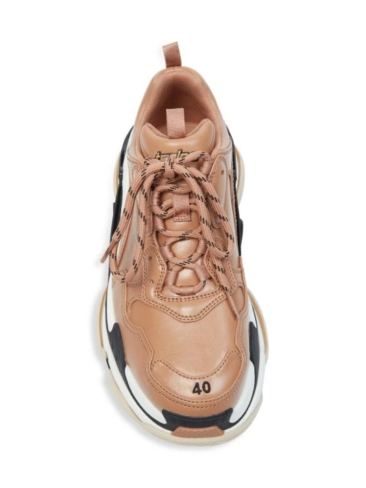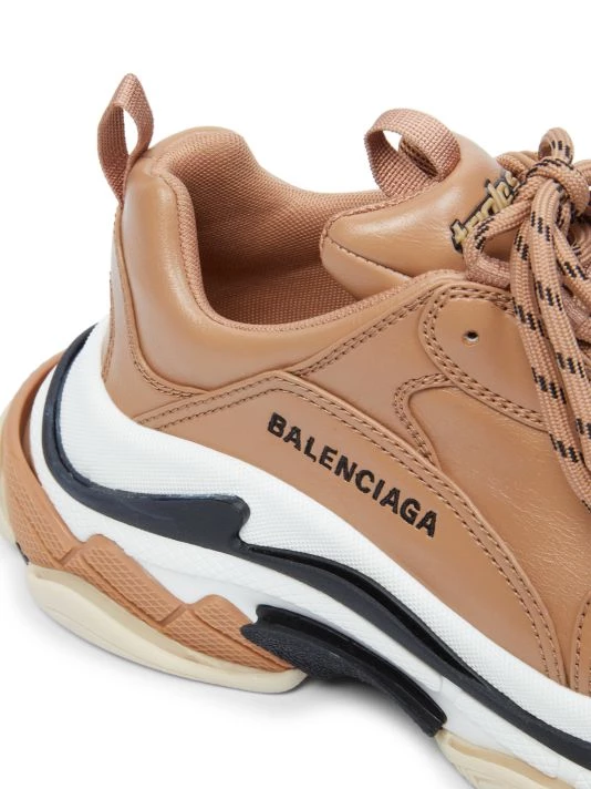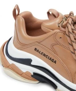 From the Triple S collection. These Balenciaga sneakers feature a chunky sole and sport a layered upper. The brand’s logo completes these shoes.