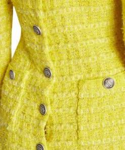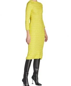 Fastened by decorative logo-embossed buttons at the back, Balenciaga’s midi dress is crafted of tweed fabric. This Italian-made piece is finished with a flattering back leg slit.