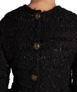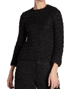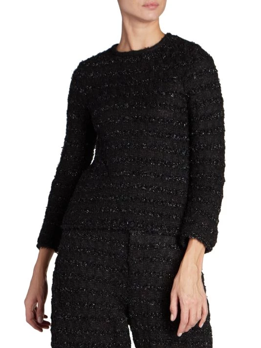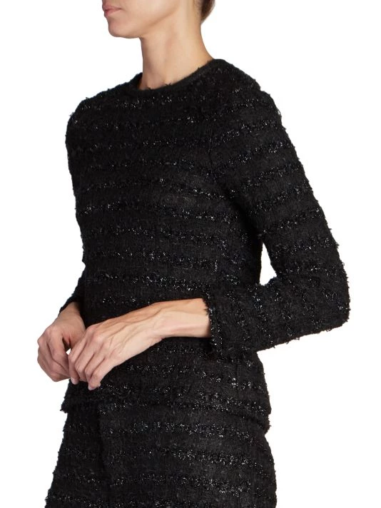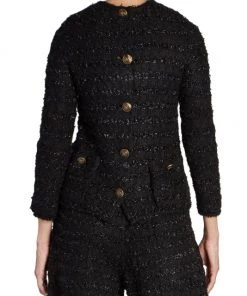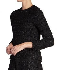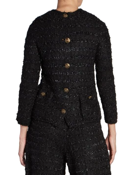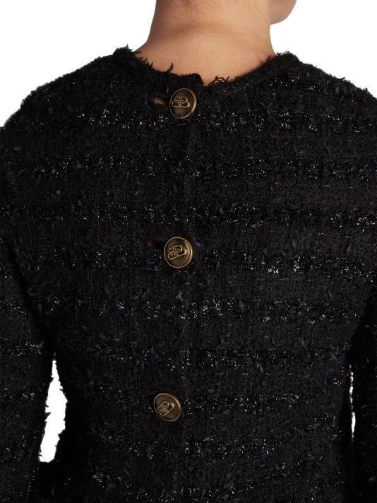 Fastened by decorative logo-embossed buttons at the back, Balenciaga’s top is crafted of tweed fabric.