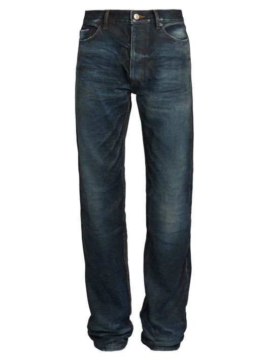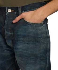 Crafted of cotton Japanese denim, these classic jeans sport a washed effect with subtle whiskering.