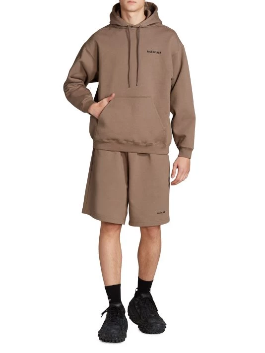 Styled with an elasticized waistband and side-seam pockets, these long-line sweat shorts feature a wide-leg silhouette finished with the Balenciaga logo on the hem.