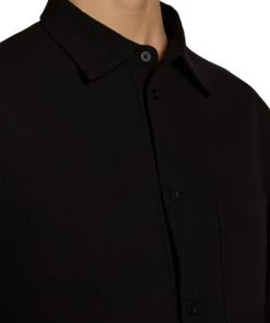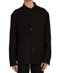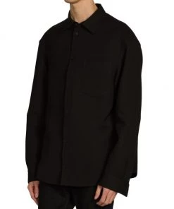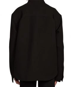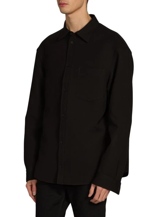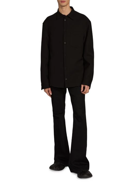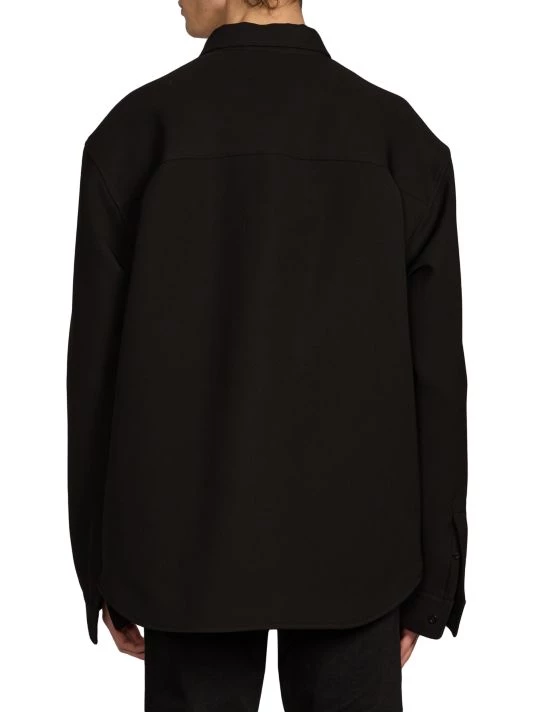 Crafted of a wool blend, Balenciaga’s shirt jacket is styled with a point collar and patch pocket at the chest.