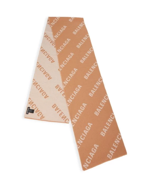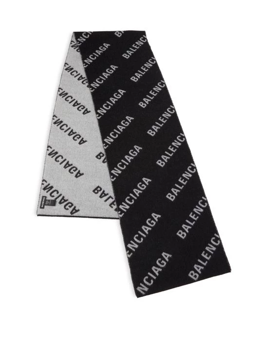 Allover intarsia knit logos define this rich virgin wool-blend scarf to iconic status.