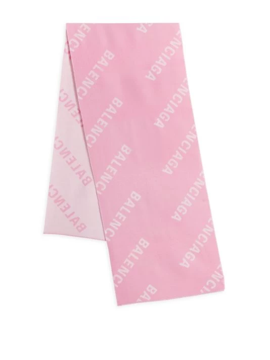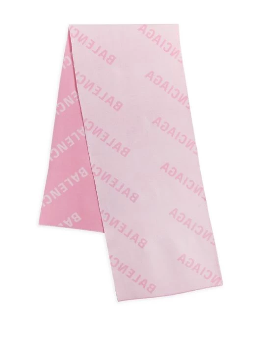 Made in Italy, Balenciaga’s knit scarf is crafted of wool. This reversible style is adorned with a repeat jacquard logo pattern.