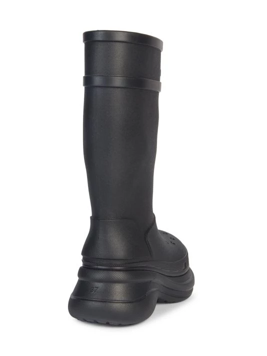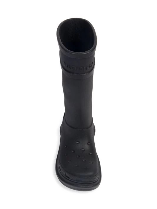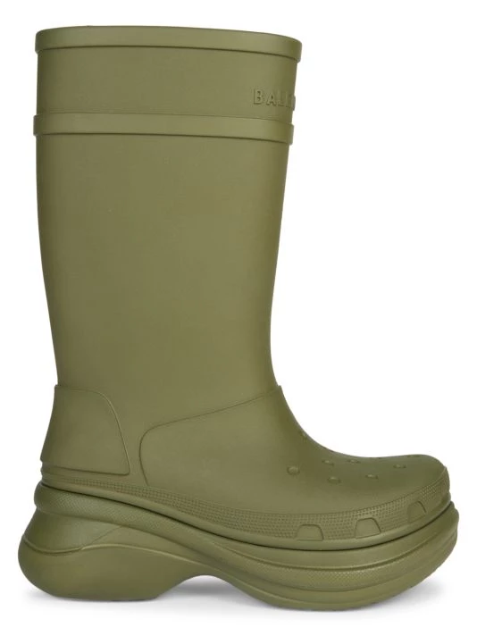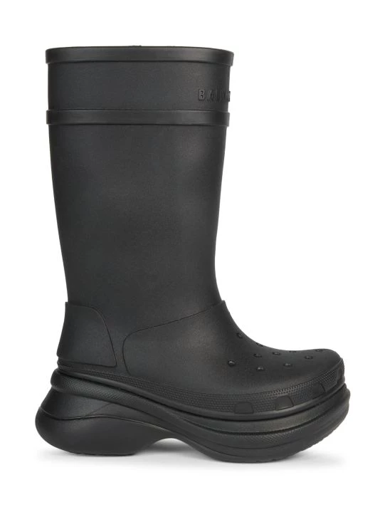 From the Crocs™ Collection. These boots are designed with a signature Crocs™ midsole and feature an embossed Balenciaga logo across the top cuff.