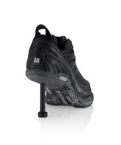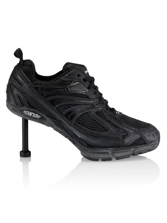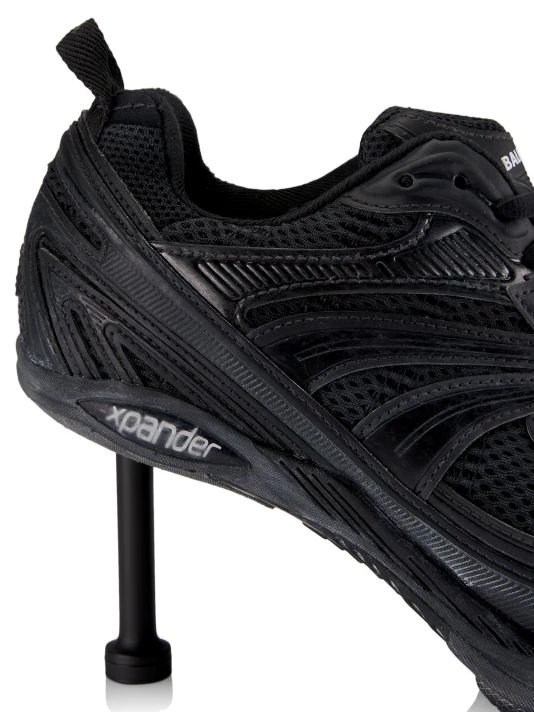 A mixture of runway couture and street style, Balenciaga’s X-Pander shoes take the look of a pump and sneaker. This statement pair is anchored by a leg-lengthening stiletto heel.