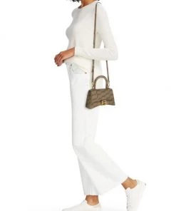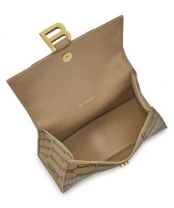 From the Hourglass Collection. Designed in an instantly recognizable curved shape, Balenciaga’s bag is crafted of coated canvas animated in the BB monogram. This Italian-made piece is highlighted with signature logo-engraved B hardware.