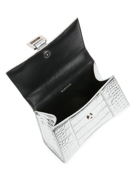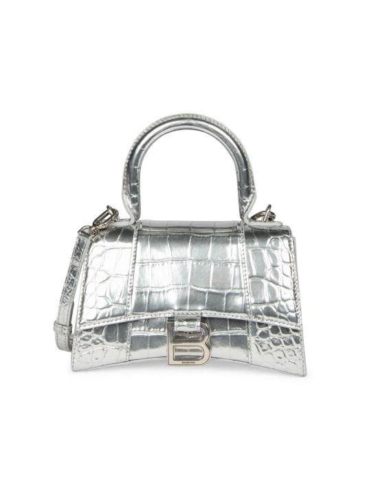 Crafted of a rich croc-embossed leather with a metallic finish, this top handle satchel has a removable shoulder strap and matching monogram hardware.