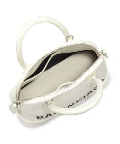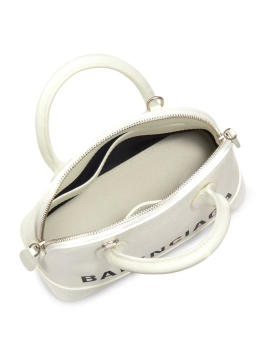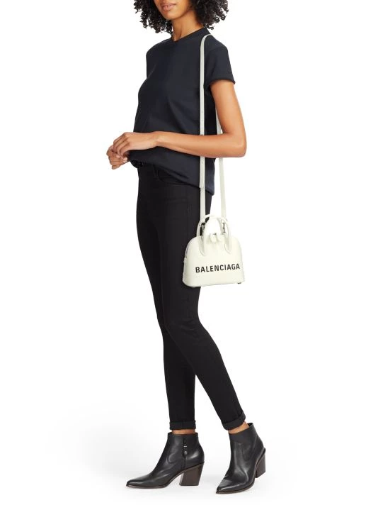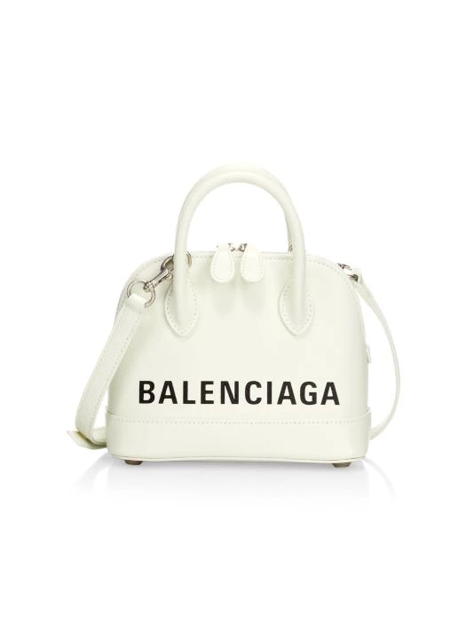 Balenciaga’s take on a structured ladylike satchel, this petite version is crafted of rich leather and stamped with bold logo across the front.