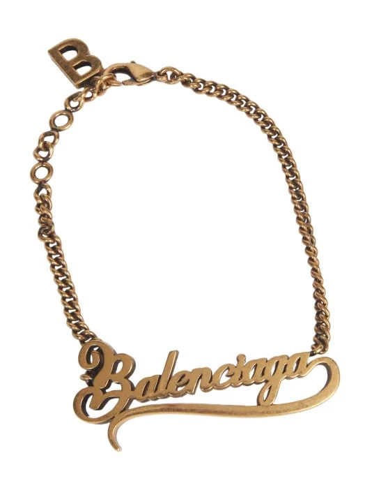 Featuring a “Balenciaga” nameplate, this chic bracelet is crafted of antiqued goldtone metal.